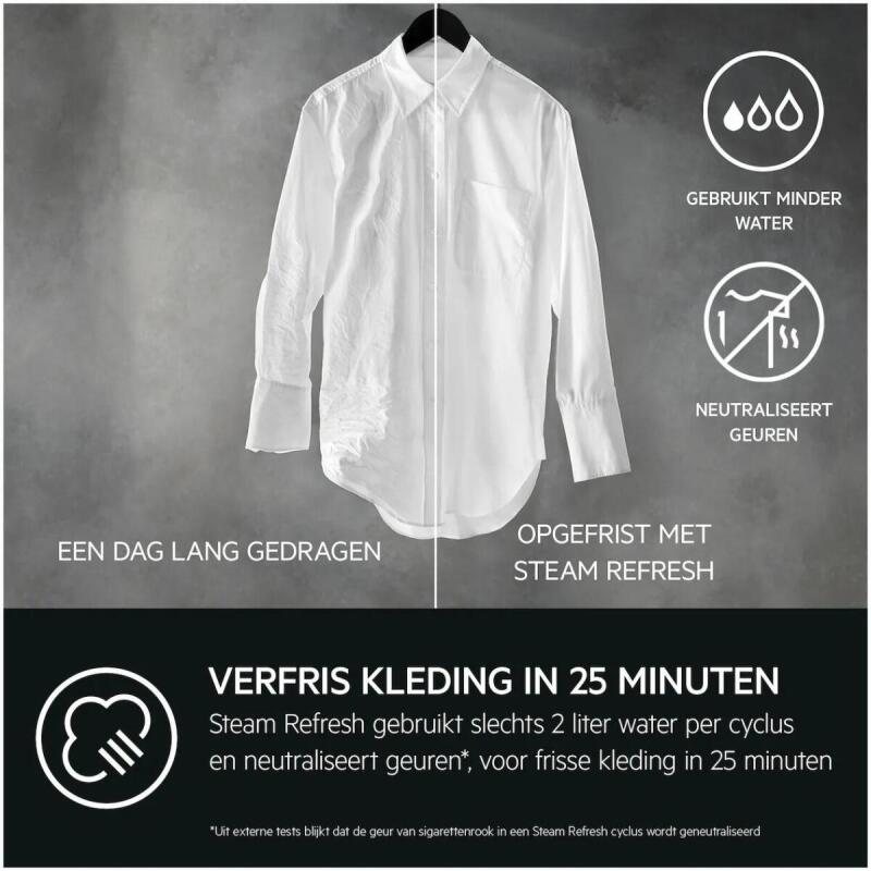 Met de AEG wasmachine LR7606UDS4 draag je bij aan een duurzaam milieu. Dankzij het lage waterverbruik van 46 liter per cyclus en de energie-efficiëntie van 0.493 kWh per cyclus, probeer je niet alleen je energierekening te verlagen, maar ook de impact op het milieu te minimaliseren. De stoomfunctie zorgt ervoor dat kledingstukken op een snelle en milieuvriendelijke manier kunnen worden opgefrist, zonder dat ze een volledige wasbeurt nodig hebben.