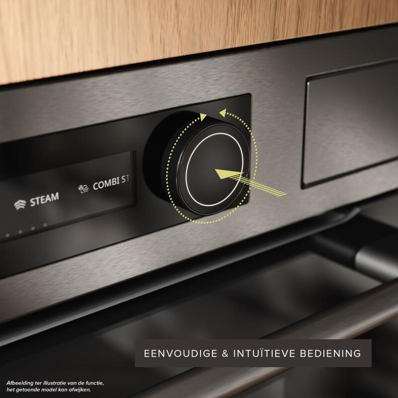 De ATAG CSX8412D heeft een gebruiksvriendelijke interface dankzij de massief metalen draaiknoppen en het TFT touchscreen. Hierdoor kun je eenvoudig de gewenste hoofdfunctie selecteren, zoals hetelucht of stomen. De toetsen onder het display lichten op wanneer ze nodig zijn, waardoor je snel kunt schakelen tussen instellingen. Dit maakt het bereiden van jouw favoriete gerechten een stuk eenvoudiger en plezieriger.