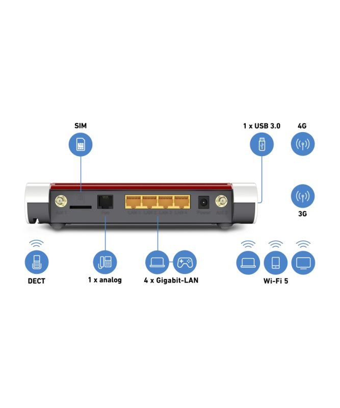 Internet via het mobiele netwerk is handig en kan overal worden gebruikt met snelle LTE-technologie en een FRITZ!Box 6850 LTE. FRITZ!Box 6850 LTE ondersteunt alle gebruikelijke LTE-frequenties in Nederland en Europa, zodat je overal kunt surfen, streamen en chatten. Met betrouwbare Wi-Fi en vier gigabit-LAN-aansluitingen verbindt FRITZ!Box 6850 LTE je apparaten betrouwbaar en veilig met het internet.