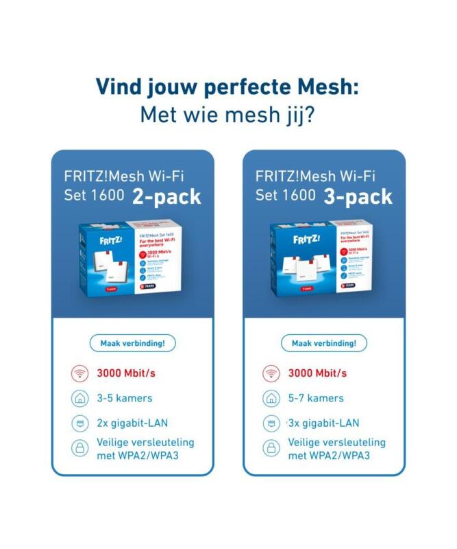 Stel je vragen over de AVM FRTIZ!Mesh set 1600E 3-pack