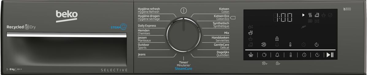 De Beko warmtepompdroger B3T6823M2 is niet alleen functioneel, maar ook esthetisch aantrekkelijk. Met zijn moderne Manhattan grijze afwerking past deze droger in iedere wasruimte. De digitale display biedt een gebruiksvriendelijke interface, waardoor je eenvoudig je voorkeuren kunt instellen. Met 15 verschillende programma’s, waaronder de Hygienic Fresh functie, ben je verzekerd van de beste zorg voor al je stoffen.