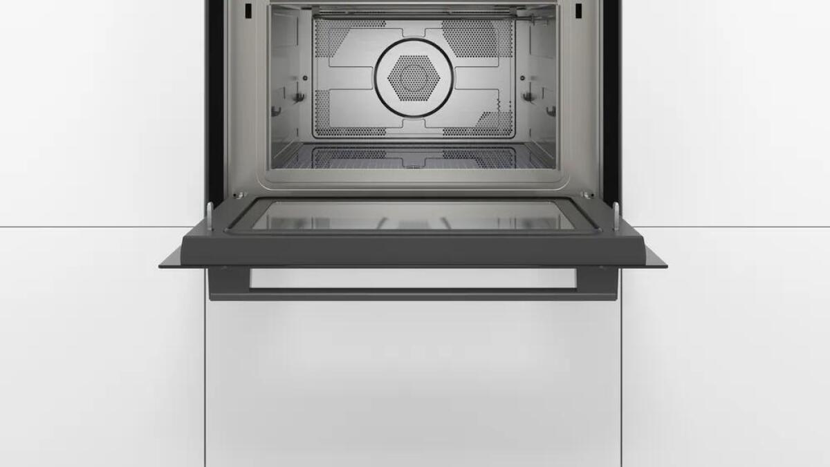 Een van de mooiste functies van de Bosch CMA585GB0 is de Cleaning Assistance, die het schoonmaken van de magnetron aanzienlijk vergemakkelijkt. Dit hydrolyse-reinigingssysteem helpt om vet en etensresten te verwijderen, zodat je meer tijd kunt besteden aan koken en minder tijd kwijt bent aan opruimen. Dit maakt de Bosch CMA585GB0 niet alleen een praktischer apparaat, maar ook een onderhoudsvriendelijk keuze.