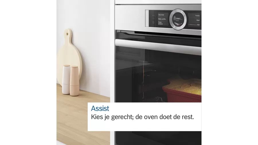 Twijfel je over welke instellingen je moet kiezen? De Assist functie weet precies wat je nodig hebt. Selecteer simpelweg je gerecht op het controlepaneel, en je oven doet de rest. Alles wordt automatisch ingesteld: de ovenstand, de temperatuur, en de bereidingstijd. Zo heb je altijd de juiste instellingen met één druk op de knop.