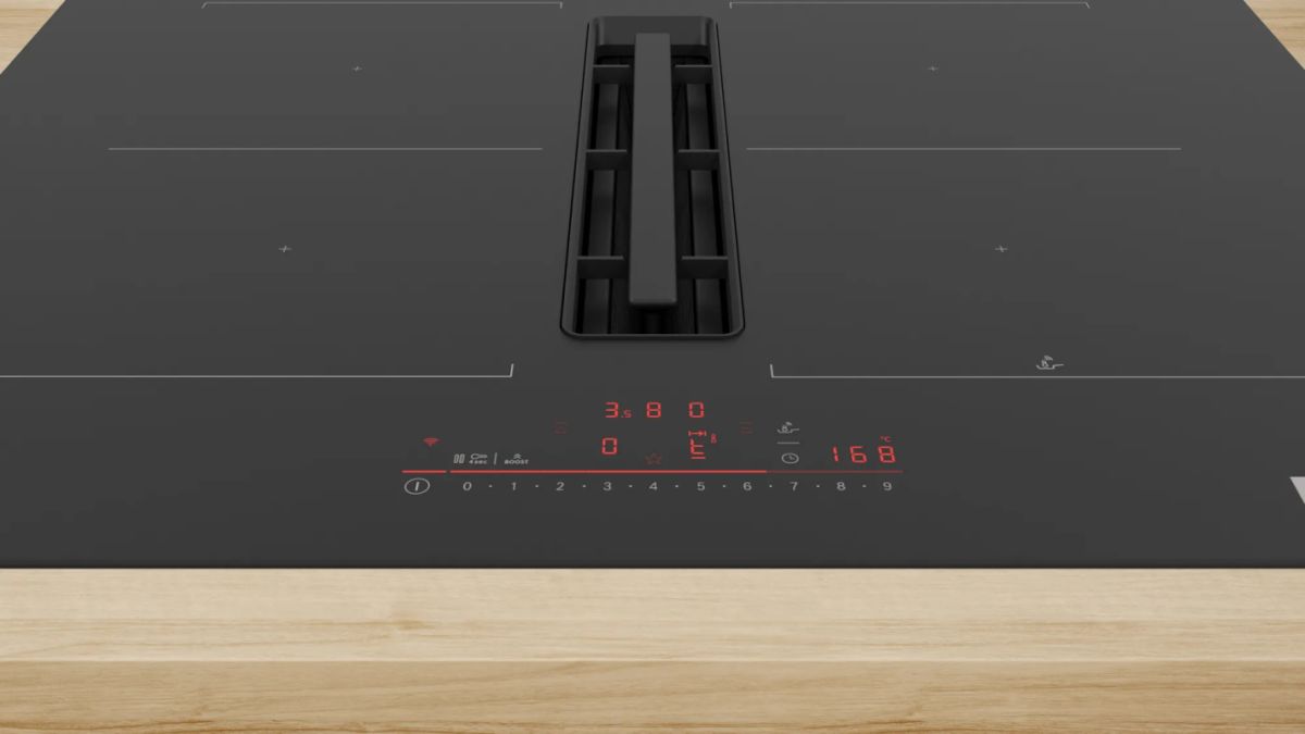 Houd je keuken fris met de geïntegreerde ventilatiemodule: het beste van onze inductiekookplaten en afzuigkappen in één handige oplossing. De module is ingebouwd in je kookplaat, zodat geuren en stoom direct bij de bron verwijderd worden. Een aparte afzuigkap is dus niet meer nodig, en zo houd je meer ruimte over in je keuken, bijvoorbeeld voor keukenkastjes.