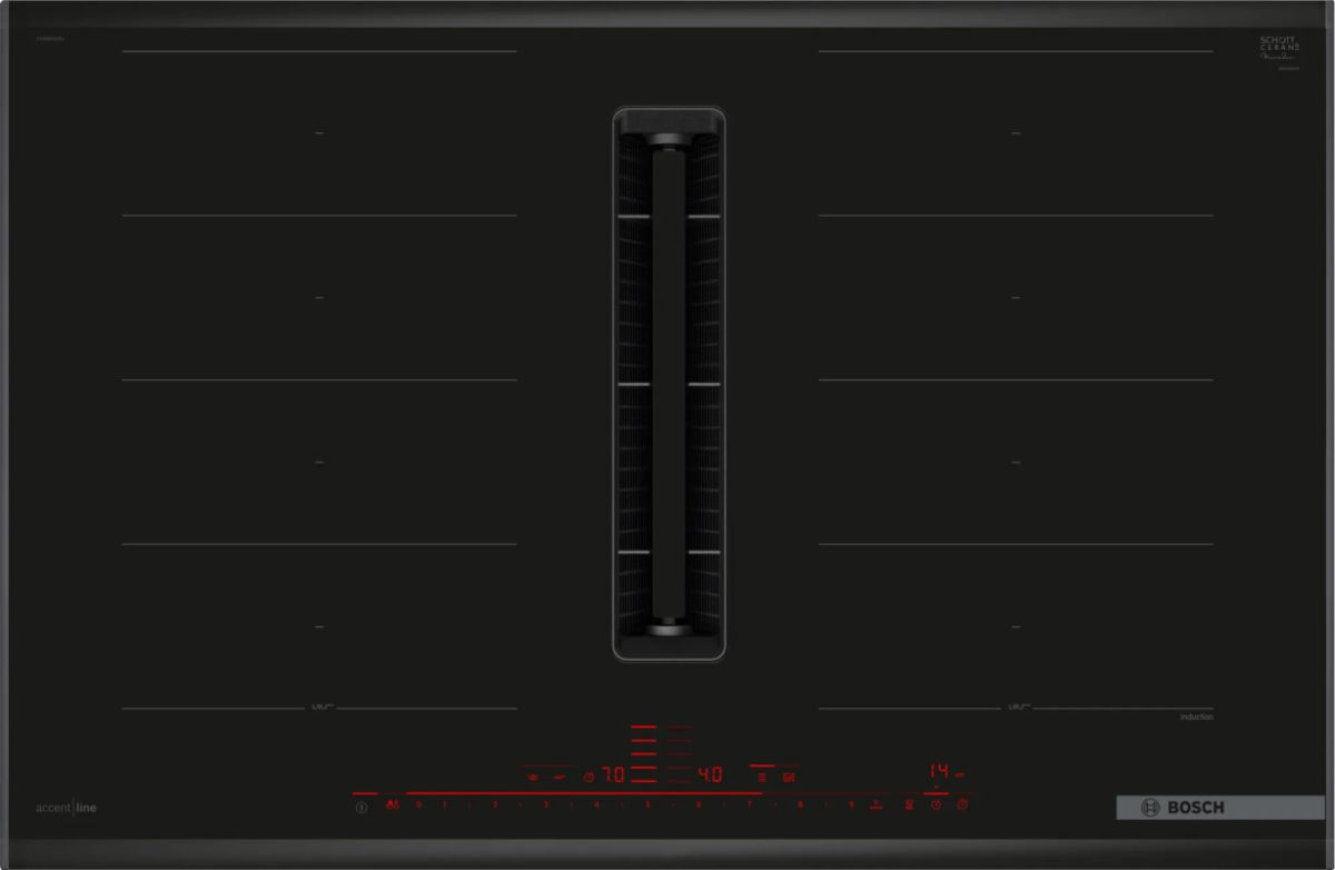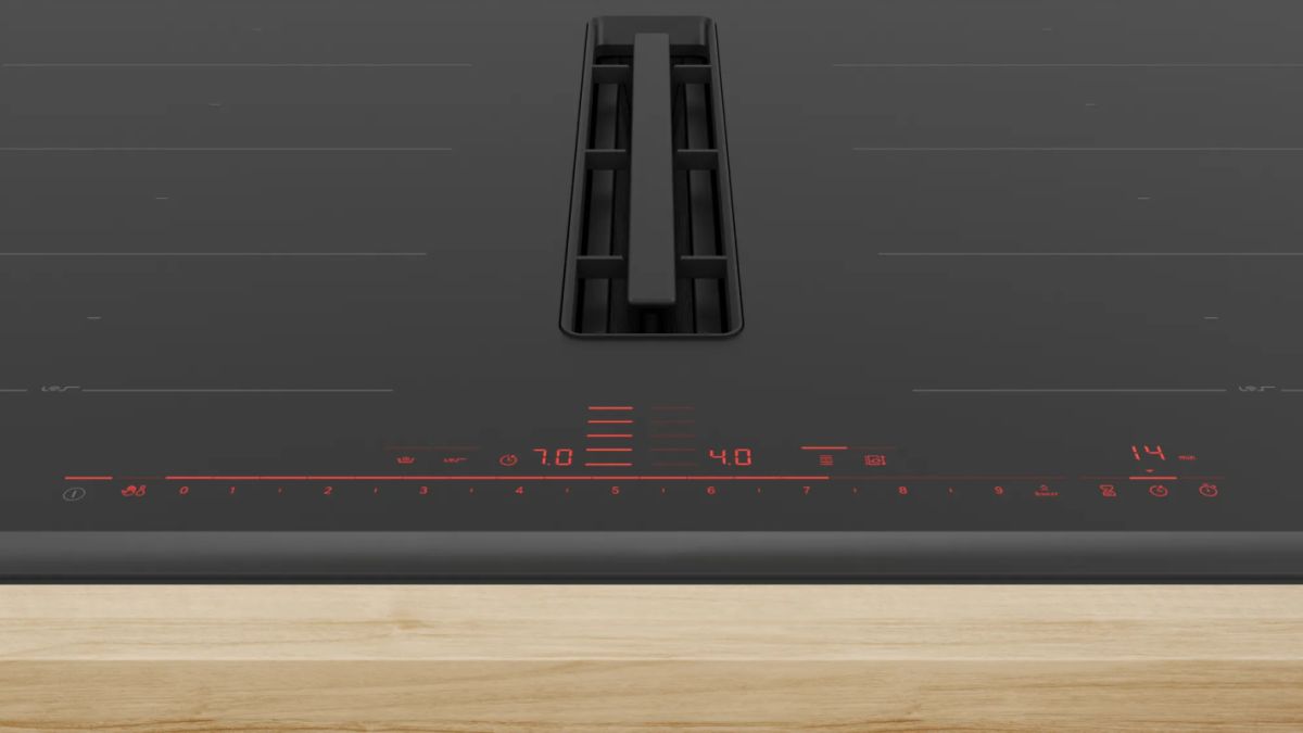 Houd je keuken fris met de geïntegreerde ventilatiemodule: het beste van onze inductiekookplaten en afzuigkappen in één handige oplossing. De module is ingebouwd in je kookplaat, zodat geuren en stoom direct bij de bron verwijderd worden. Een aparte afzuigkap is dus niet meer nodig, en zo houd je meer ruimte over in je keuken, bijvoorbeeld voor keukenkastjes.