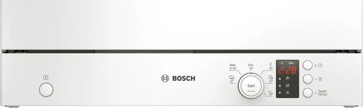 De Bosch vrijstaande vaatwasser SKS2ITW00E heeft een strak en modern design in een klassieke witte kleur, waardoor hij in elke keuken een goede indruk maakt. Het 7-segment display geeft niet alleen de resttijd aan, maar ook handige informatie zoals de bijvulstatus. Met een geluidsniveau van klasse C is deze vaatwasser relatief stil, zodat je ongestoord kunt genieten van je dagelijkse activiteiten.