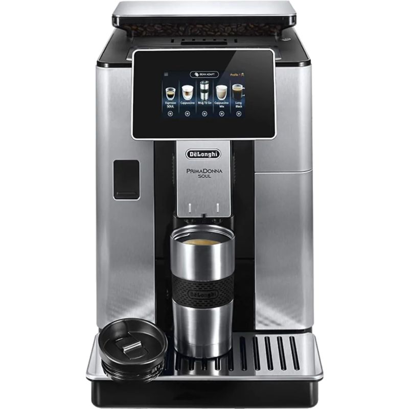 De´Longhi volautomatische koffiemachine bonen ECAM610.74.MB PrimaDonna Soul is de ideale keuze voor koffieliefhebbers die houden van kwaliteit en gebruiksgemak. Deze machine maakt het mogelijk om een breed scala aan koffiespecialiteiten met versgemalen bonen te bereiden, allemaal met een druk op de knop. Door het innovatieve ontwerp en de hoogwaardige afwerking biedt deze koffiemachine niet alleen excellente prestaties, maar ook een esthetisch aantrekkelijke uitstraling die in elke keuken past.