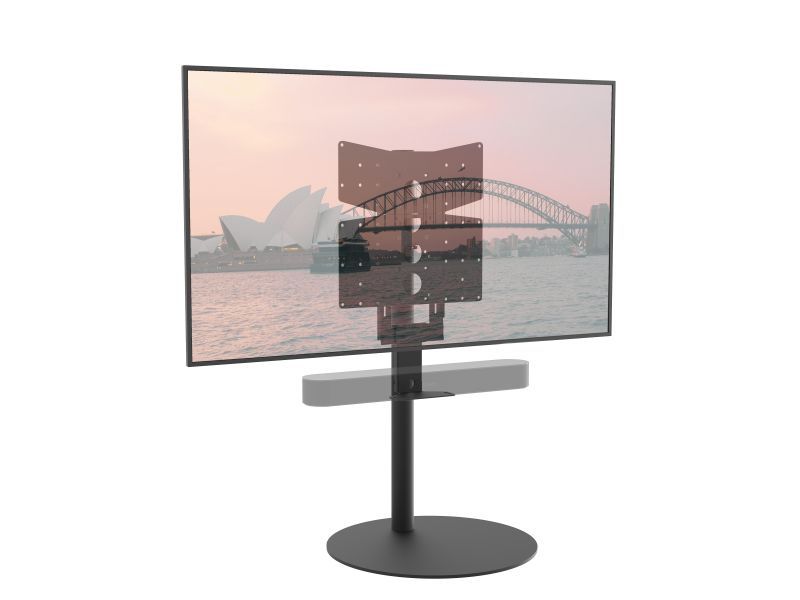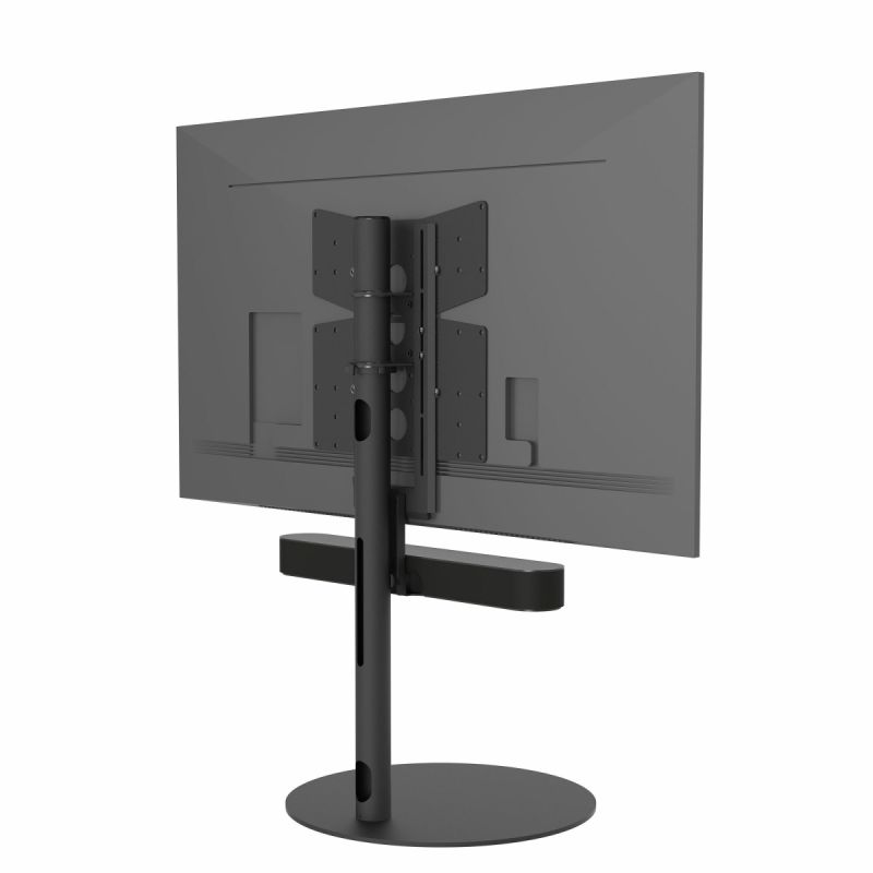 In ons systeem combineert u een Cavus vloerstandaard met een houder voor een soundbar.