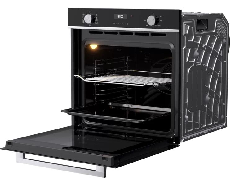 Het multifunctionele ovensysteem inclusief turbo-hetelucht biedt voor al jouw ovengerechten de juiste bereidingsmogelijkheden. De oven heeft een temperatuurbereik van 30 tot 250 ºC. De oven heeft vijf insteekniveaus met zijrekjes die het in- en uitschuiven van de bakplaten extra makkelijk maken. Dankzij de krachtige ovenfuncties en de vijf insteekniveaus bak jij moeiteloos op meerdere niveaus tegelijk. De OM272ZT is voorzien van Easy Clean emaille en een uitneembare binnenruit voor extra schoonmaakgemak. De klapdeur is voorzien van driedubbel glas en voorkomt daarmee dat de buitenzijde te warm wordt. Om de bakresultaten goed in de gaten te houden is de oven voorzien van binnenverlichting. Je bedient de oven door middel van touch control in combinatie met draaiknoppen. Het led-display geeft de tijd weer en dankzij de digitale timer met uitschakelfunctie beheer je de baktijd van jouw gerechten nauwkeurig.