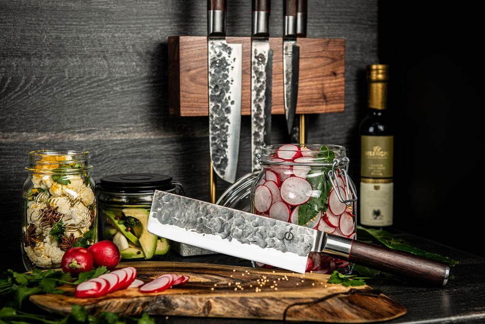 De Forged sebra hakbijl is een essentieel hulpmiddel voor elke serieuze chef. Met zijn unieke design en hoogwaardige afwerking biedt deze hakbijl niet alleen functionaliteit, maar ook een vleugje stijl in je keuken. Het bijzondere aan de Sebra serie is het donker houten heft en het gehamerde lemmet, dat niet alleen esthetisch aantrekkelijk is, maar ook bijdraagt aan de prestaties van het mes.