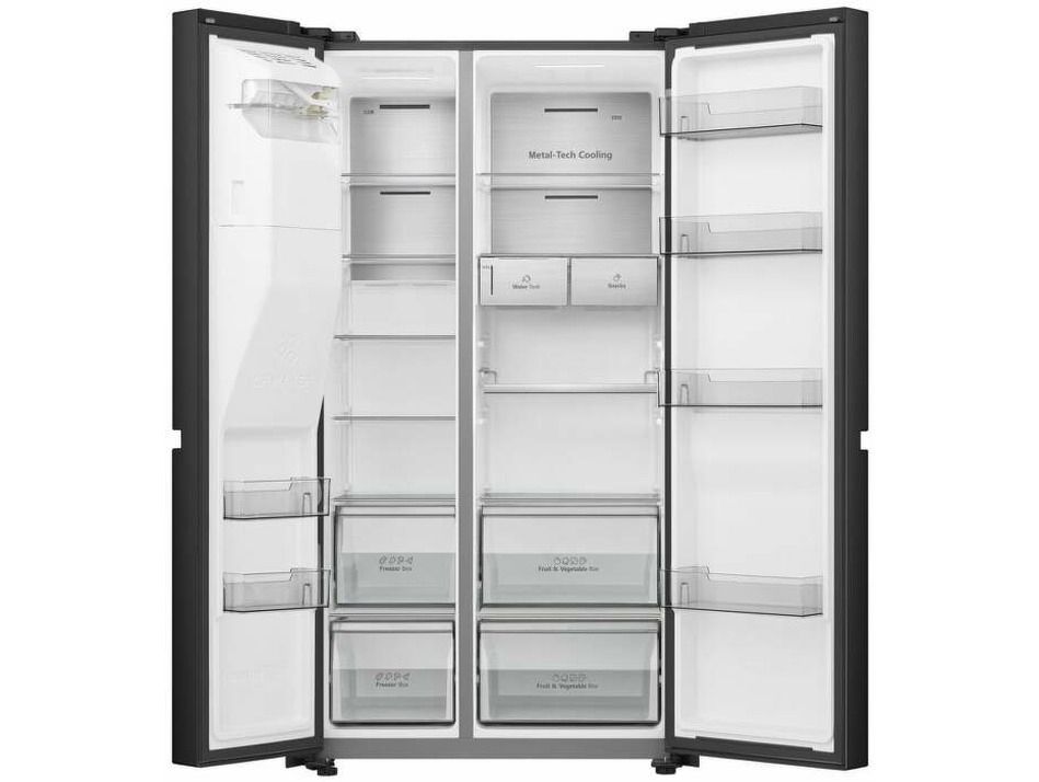 De Hisense amerikaanse koelkast RS818N4IFD is uitgerust met de nieuwste technologieën voor een optimale prestatie. Denk hierbij aan Multi Air Flow, dat zorgt voor een gelijkmatige luchtcirculatie en daarmee de versheid van je voedsel garandeert. Tevens beschikt deze koelkast over een snelle koelfunctie, ideaal voor wanneer je net boodschappen hebt gedaan en je producten snel op de juiste temperatuur wilt hebben. Hiermee geniet je van de kwaliteit en betrouwbaarheid die je verdient.
