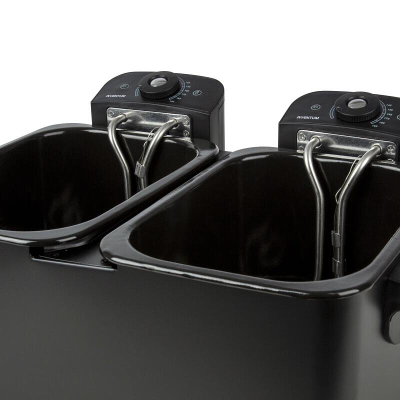 De Inventum frituurpan GF461B is de ideale oplossing voor een snelle en gemakkelijk bereiding van jouw favoriete snacks. Met een ruime inhoud van 5 liter, verdeeld over twee aparte compartimenten van 2,5 liter, biedt deze frituurpan de mogelijkheid om verschillende gerechten tegelijk te bereiden. De krachtige verwarmingselementen van 1800 watt zorgen ervoor dat je altijd kunt rekenen op een perfect bakresultaat.