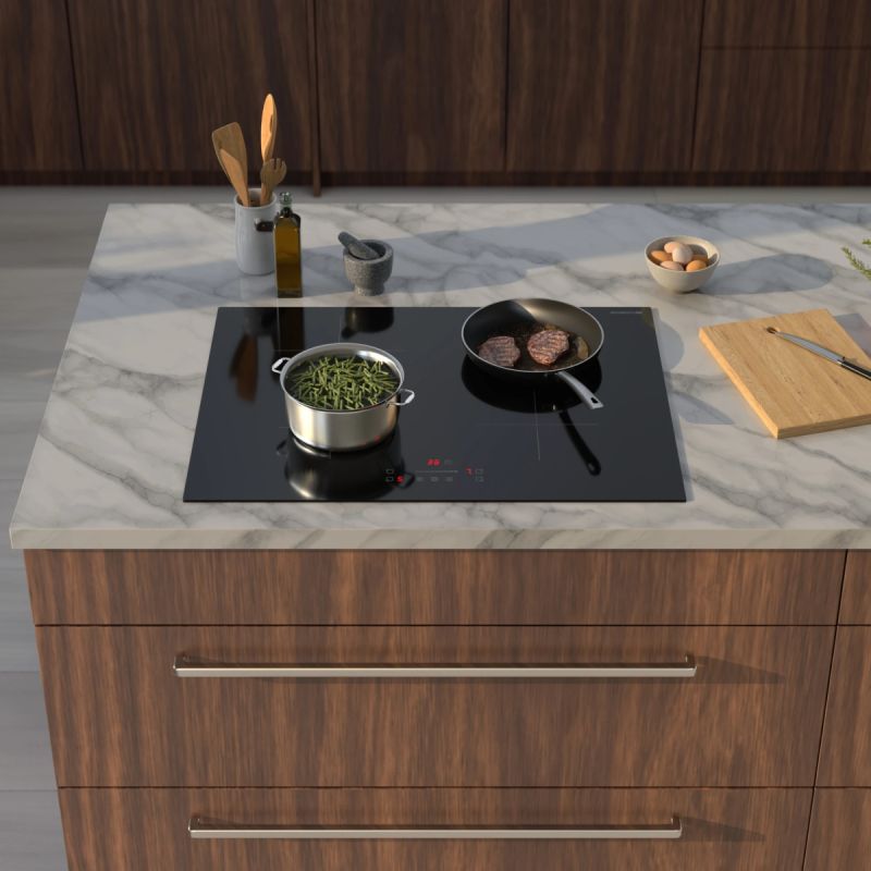 De IKI7028 inbouw inductiekookplaat heeft een randloos design. De kookplaat ligt strak op je aanrechtblad.