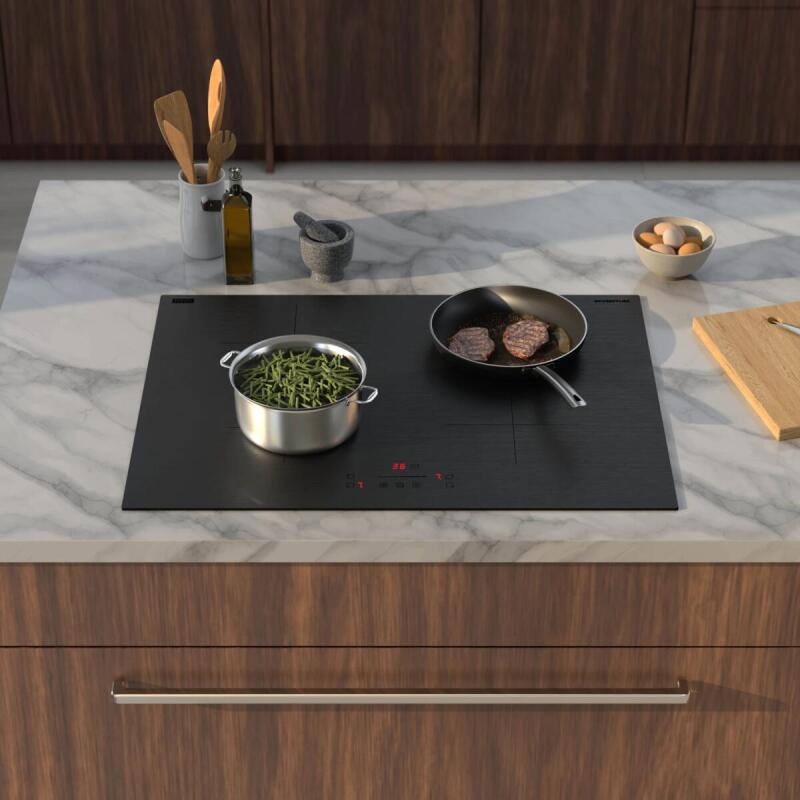 Deze inductiekookplaat is voorzien van powermanagement. Een slimme technologie waarmee je kunt kiezen of je de kookplaat op 1- of 2-fase wilt aansluiten. Het vermogen van de kookplaat wordt automatisch verdeeld over de kookzones die je gebruikt. Kies je voor 1-fase dan sluit je de kookplaat aan op een normaal stopcontact (plug & play). Aanpassingen in de meterkast zijn niet nodig.