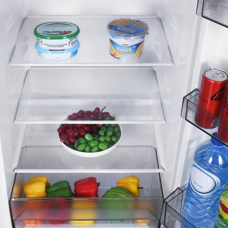 De Inventum KK1430W is uitgerust met superkoelen, wat betekent dat je voedsel en dranken snel op de gewenste temperatuur kunt krijgen. Dit is vooral handig bij het invullen van de koelkast met nieuwe boodschappen. Daarnaast is de deur omkeerbaar, zodat je de koelkast kunt aanpassen aan de indeling van je keuken. Dit soort flexibiliteit maakt het gebruik van de Inventum KK1430W nog aangenamer.