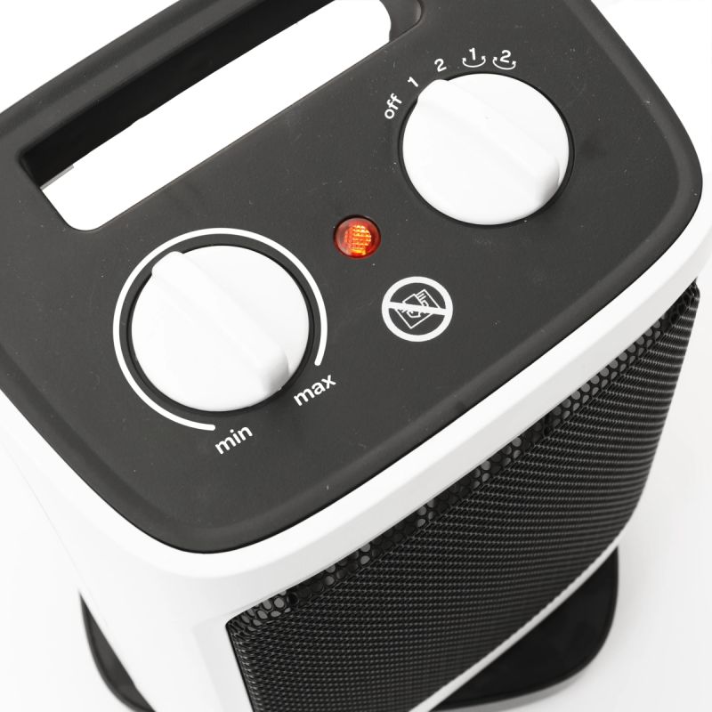 De Inventum ventilator kachel KC222WOS is ontworpen met gebruiksgemak in gedachten. Dankzij de 60° oscillatiestand wordt de warmte gelijkmatig verspreid in de ruimte. Dit zorgt ervoor dat je van een aangename temperatuur kunt genieten, zonder dat je kachel je tot in de hoek verlaat. Met twee standen en een geïntegreerd handvat, is hij eenvoudig te verplaatsen en aan te passen aan jouw wensen.