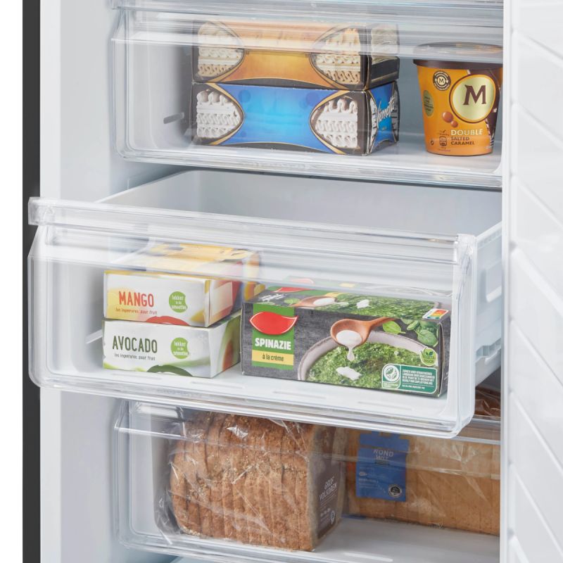Met 3 glazen plateaus en 5 transparante lades biedt de Inventum vrieskast no frost VR1850B genoeg ruimte om al je diepvriesproducten op een georganiseerde manier op te bergen. De handige deurvakken zijn ideaal voor kleinere artikelen zoals ijsjes en koelelementen. Hiermee blijft alles binnen handbereik, zodat je ook in drukke tijden snel de juiste producten kunt vinden.