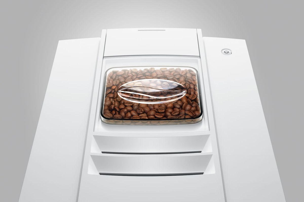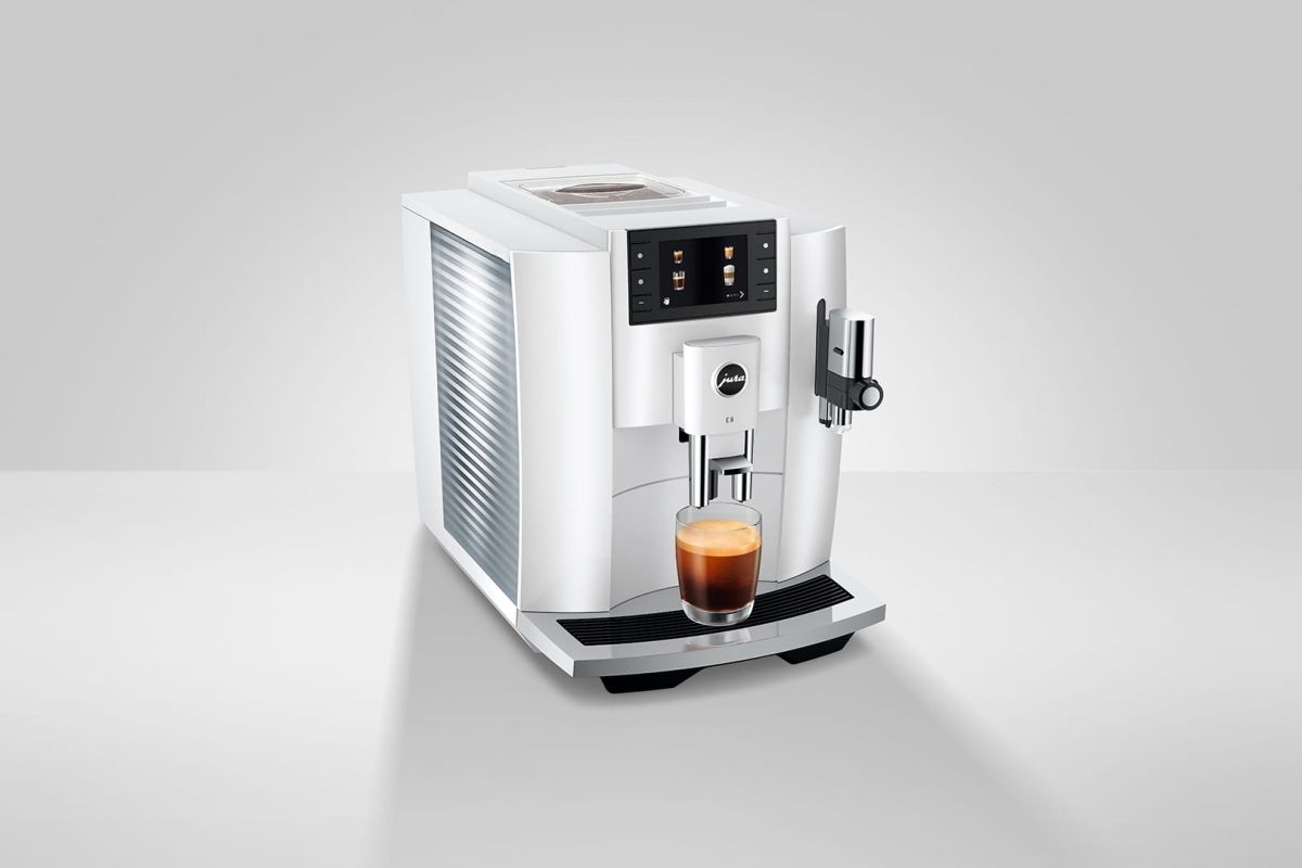 Imposant design van de JURA volautomatische koffiemachine bonen E8 Piano White (EC)