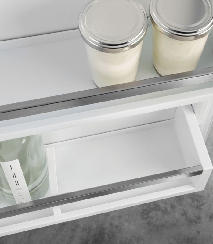 Kenmerkend voor de Liebherr binnenkuip zijn de aan beide zijden geïntegreerde steunen aan voor- en achterkant. Deze garanderen een grote flexibiliteit bij het verstellen van de glasplateaus. U kunt de glasplateaus om de 4 cm plaatsen. Een ander voordeel is het zeer gladde interieur dat schoonmaken vereenvoudigt.