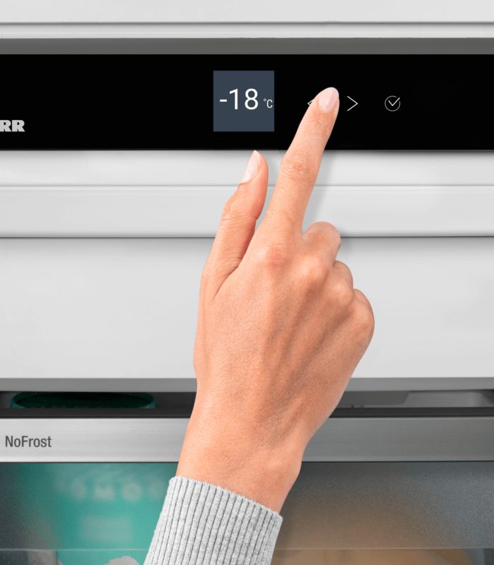 Dankzij het heldere Touch display kunnen alle functies gemakkelijk worden bediend. Het temperatuurdisplay geeft de actuele temperatuur van het koel- en/of vriesdeel weer. Met de duidelijk pijlsymbolen kan heel eenvoudig door het menu genavigeerd worden.