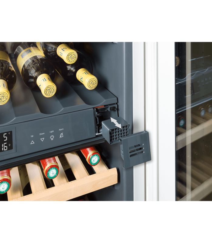 De luchtkwaliteit is een belangrijk onderdeel voor het bewaren van wijnen. Alleen bij een juiste luchtvochtigheid van meer dan 50% blijven de kurken soepel en drogen niet uit. Om de kurken ook van binnen zoveel mogelijk vochtig te houden, worden wijnen in principe liggend bewaard. Bij wijnbewaarkasten en modellen uit de Vinidor serie kan door indrukken van de ventilatortoets de luchtvochtigheid worden verhoogd.