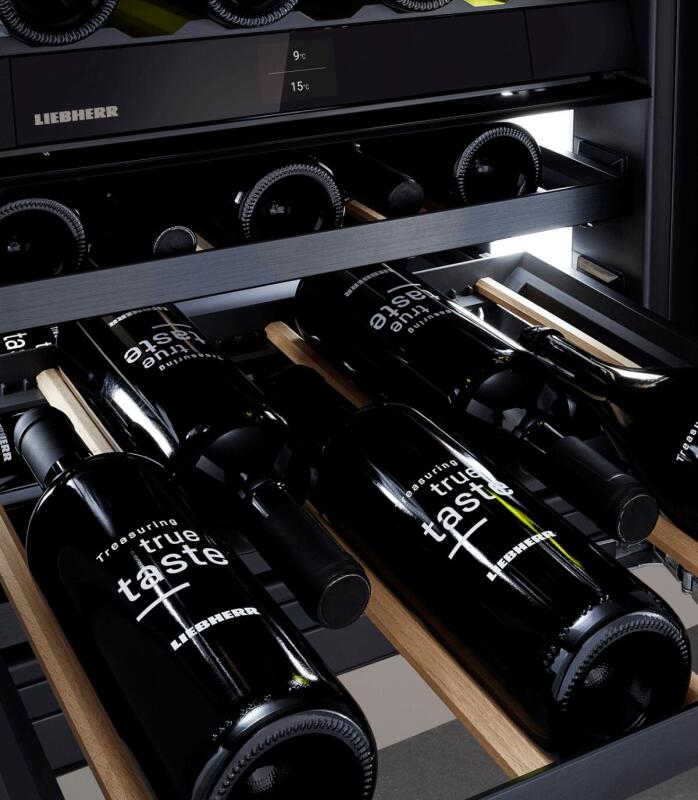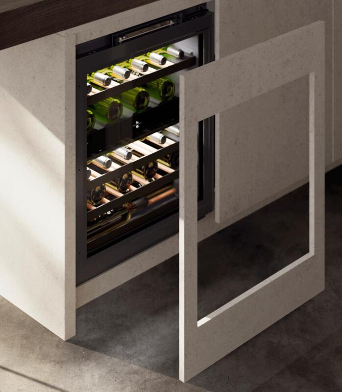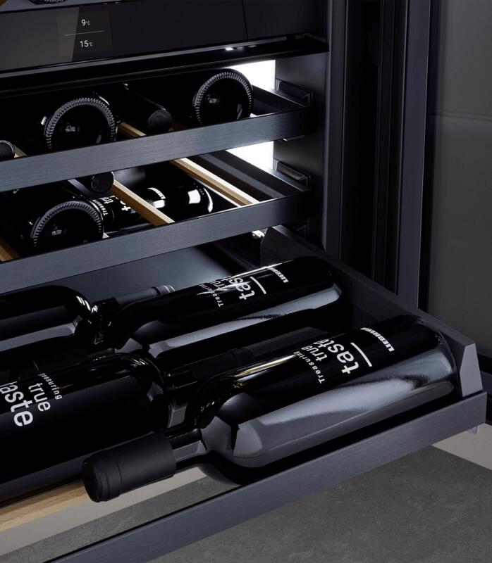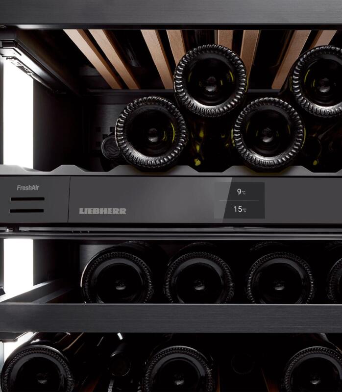 Deze extra ruime onderbouw wijnkast in nismaat 86-92 kan uitgevoerd worden met een meubelpaneel in combinatie met TipOpen. De TipOpen deurtechniek is ideaal in gebruik, ook in greeploze keukens. U heeft rode én witte wijnen direct op de perfecte drinktemperatuur dankzij de gescheiden temperatuurzones. Dit onderbouw model heeft een greeploze SoftClose glasdeur, FreshAir filter, houten FlexFit plateaus op rails met aluminium front en LED lichtzuilen.