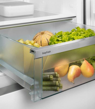De EasyFresh lade is de ideale plek voor uw groente en fruit. Dankzij een hoge luchtvochtigheid blijven de groente en fruit langer vers dan in een normale groentelade. De lade is soepel uittrekbaar en biedt een eenvoudige toegang tot uw groente en fruit.