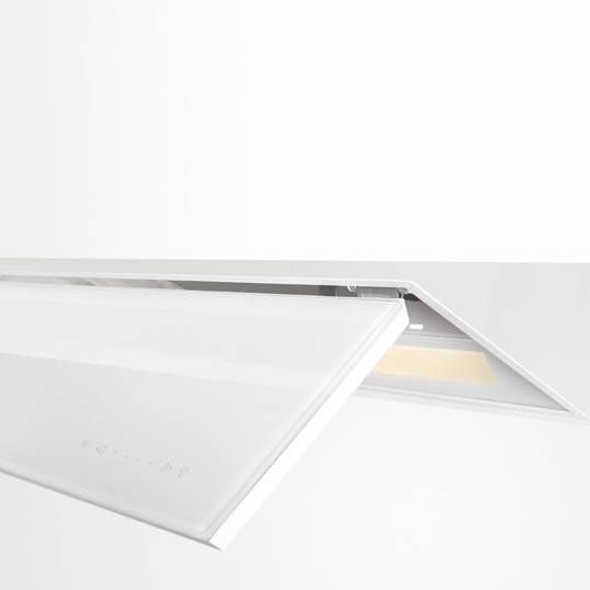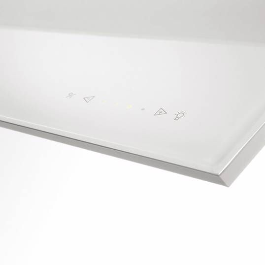 - Kantelbare klep in wit glas voor maximale opvang kookdampen