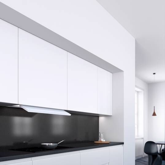- Volledig onzichtbaar te integreren in een ondiepe bovenkast met een inbouwdiepte van slechts 32 cm