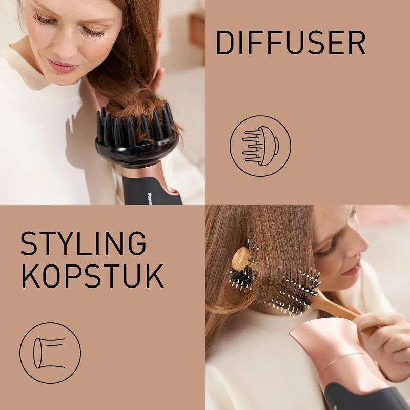 De Panasonic fohn EH-NA63CN825 is een uitstekende keuze voor wie op zoek is naar een stijlvolle en krachtige föhn. Deze föhn combineert geavanceerde technologie met een elegant ontwerp, waardoor je in staat bent om je haar snel en efficiënt te stylen. Dankzij de unieke functies geniet je van een zachtere, glanzendere haardos zonder onnodige schade. Dit maakt de Panasonic fohn niet alleen een praktisch apparaat, maar ook een waardevolle aanvulling op jouw dagelijkse verzorgingsroutine.