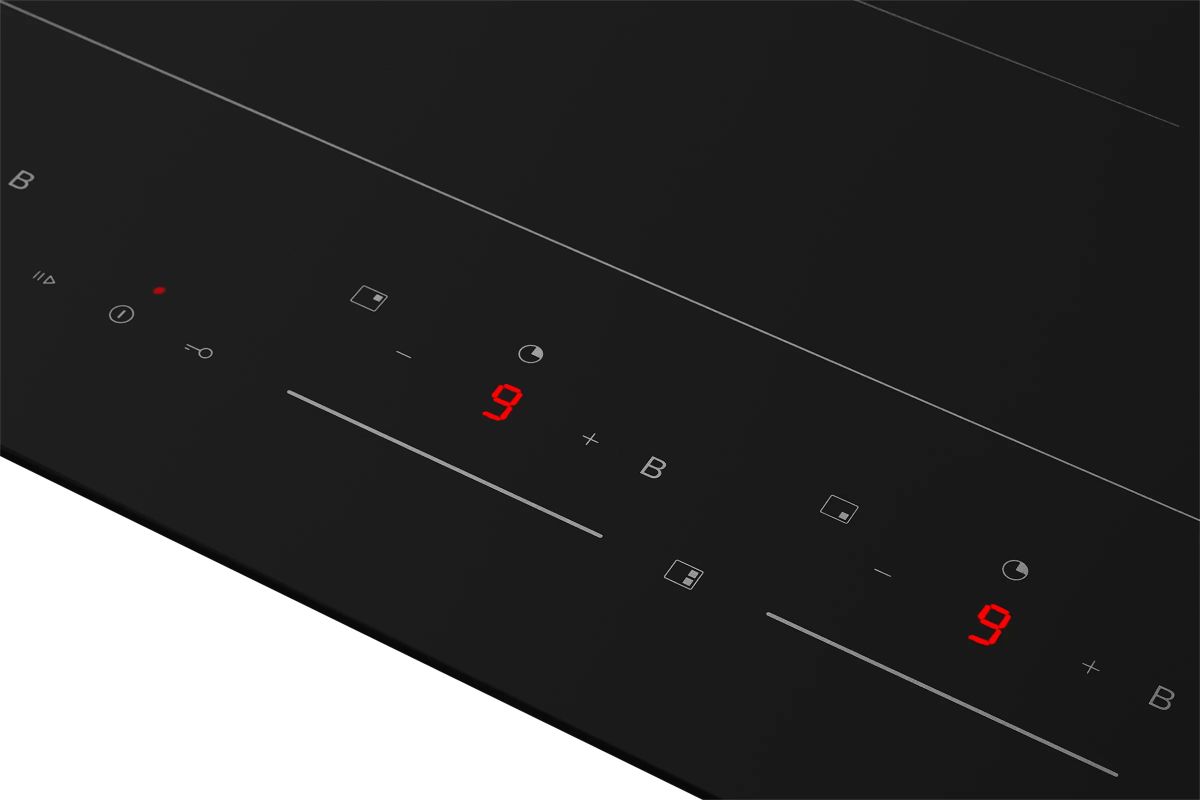 Een ruim opgezette inductie kookplaat met zones die je kan koppelen tot één grote kookzone. De bediening maakt koken eenvoudig doordat je met een slider bediening per zone snel en eenvoudig de gewenste kookstand kan instellen.