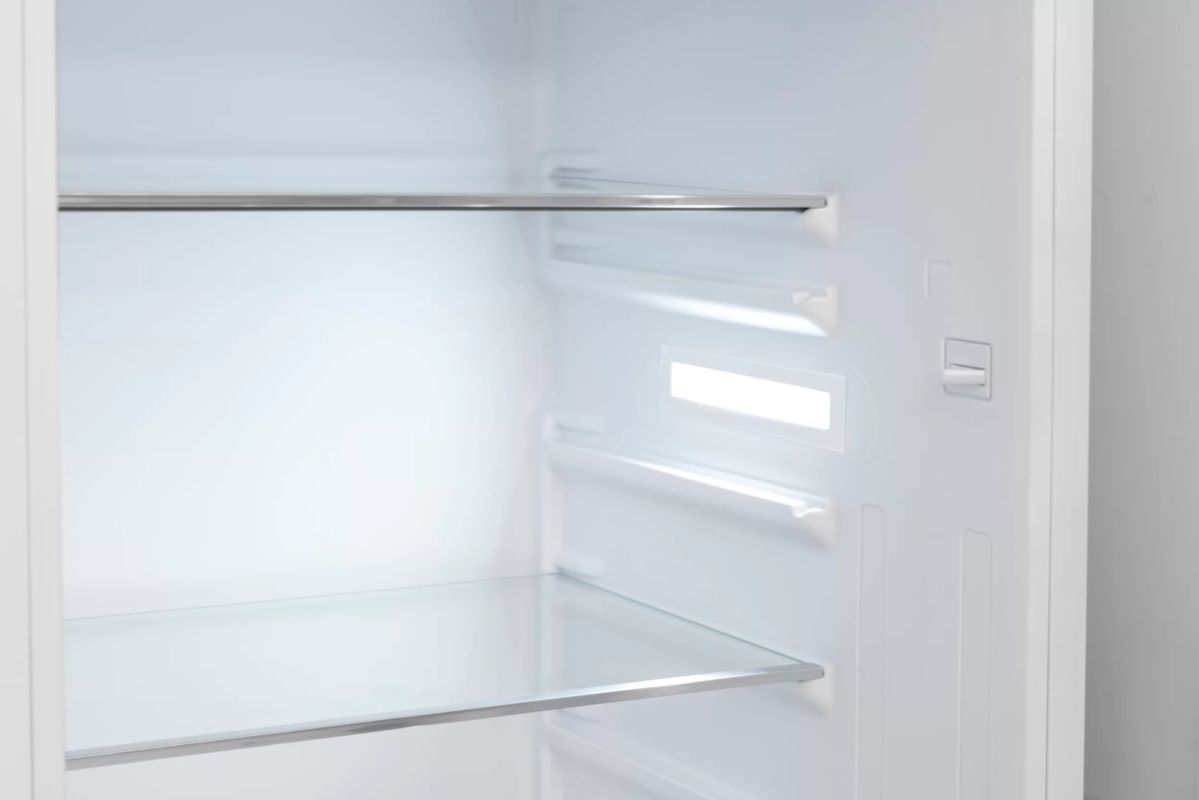 Deze compacte koelkast is met energielabel D een slimme keuze! De koelkast beschikt over vier glazen draagplateaus met RVS look afwerking, die op verschillende niveaus geplaatst kunnen worden. De brede groentelade biedt bovendien alle ruimte voor verse producten.