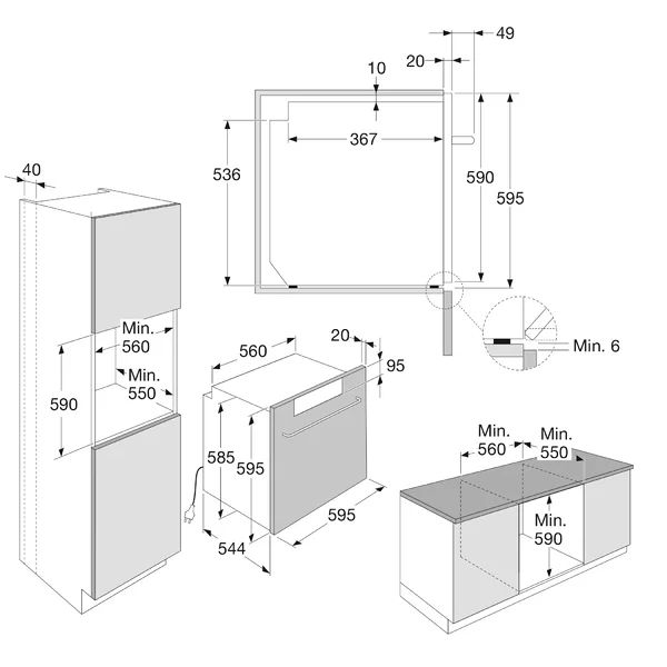 | Min. nisdiepte | 550 mm |