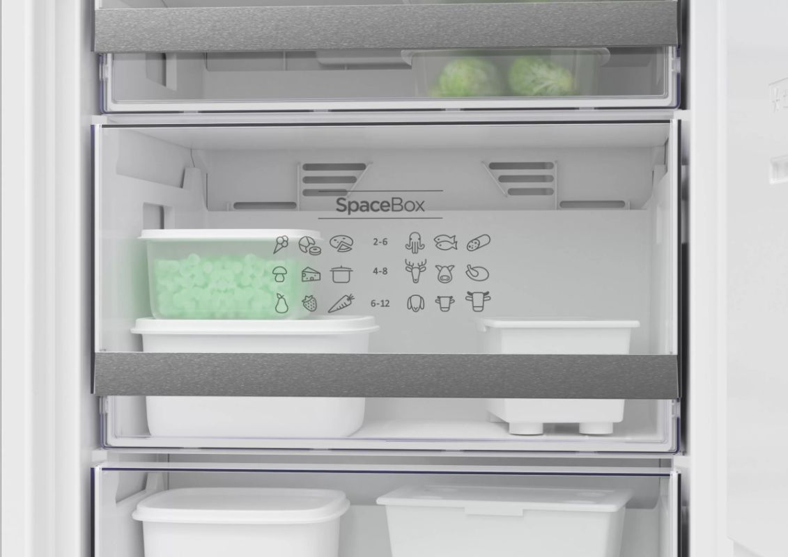 Een mooie, handige en unieke feature; de glazen plateaus tussen de diepvriesbakken in. Wanneer je iets grootst wilt invriezen, bijvoorbeeld een hele kalkoen of een grote ijstaart, dan haal je de diepvrieslade er gemakkelijk uit met de handvatten en plaats je het product op het glazen plateau. Daarnaast zorgt het voor goed zicht op de producten in de lade eronder.