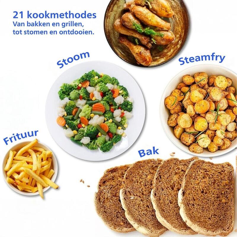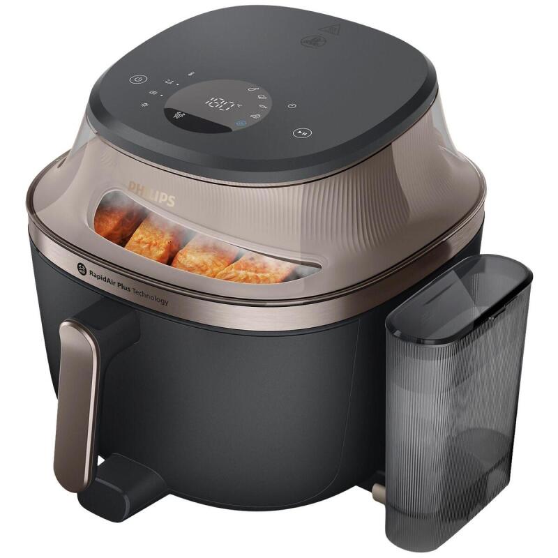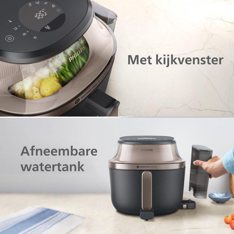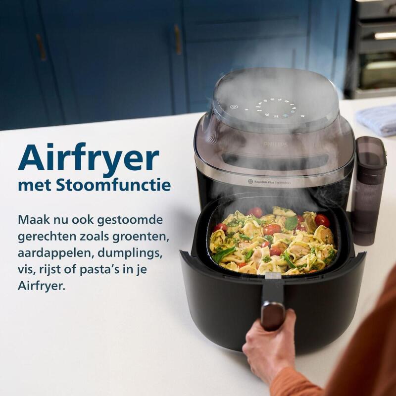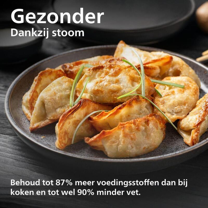 De Philips airfryer NA547/07 is een innovatieve keukenpartner die het bereiden van heerlijke, gezonde maaltijden een stuk eenvoudiger maakt. Met zijn stoomfunctie en ruime 7,2 liter capaciteit, biedt dit toestel de mogelijkheid om een verscheidenheid aan gerechten te bereiden, van knapperige kip tot luchtige dumplings. De combinatie van stoomtechnologie en airfryen zorgt ervoor dat je kunt genieten van sappige en voedzame gerechten met tot 90% minder vet dan bij traditionele bereidingsmethoden.