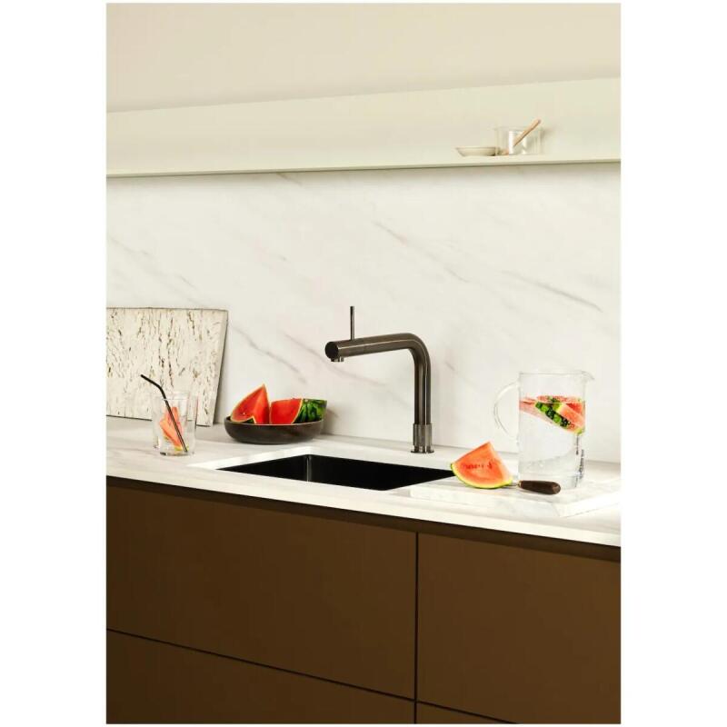Met de Quooker Front Gunmetal voeg je niet alleen een blikvanger toe aan je keuken, maar ook een uiterst praktische oplossing. Deze elegante kraan levert koud, warm én direct kokend water uit één en dezelfde uitloop – ideaal voor wie gemak en design weet te waarderen.