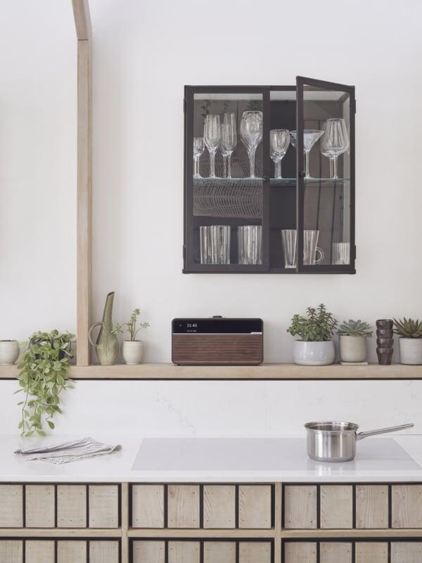 Het uiterlijk van de Ruark R2 is eenvoudig maar verbluffend. De behuizing, met precieze lijnen en zachte contouren, combineert geweldig met de lattenhouten grille om een tijdloos retro-modern gevoel te creëren. Samen met zijn gelijmde glazen display en het Ruark handelsmerk: de bekende RotoDial-controller bovenop, is de R2 onmiskenbaar een Ruark-ontwerp en blijft de kwaliteit duidelijk.