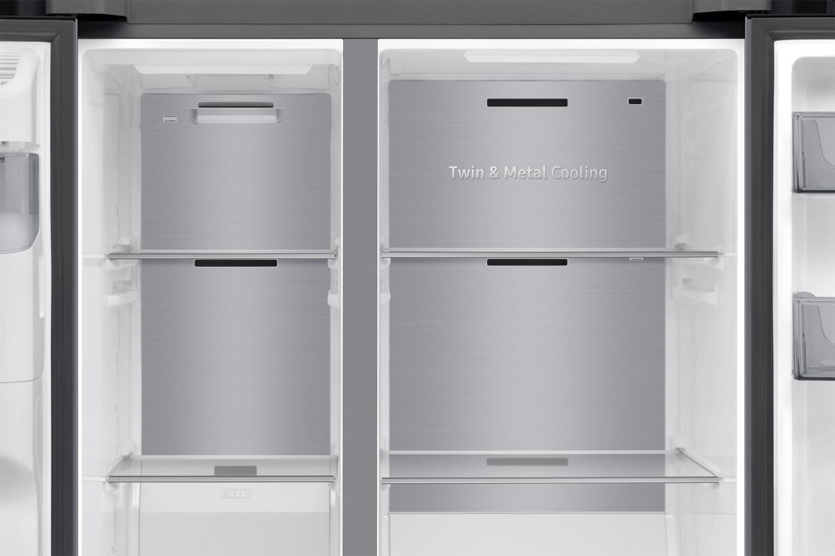 Met behulp van de SpaceMax™-technologie biedt de Samsung RS70F66KBTEF meer binnenruimte zonder dat de buitenafmetingen toenemen. Dit betekent dat je gemakkelijk al je favoriete voedingsmiddelen en dranken kunt opslaan zonder dat je je zorgen hoeft te maken over ruimtegebrek. De grote groentelade en de diverse planken maken het organiseren van je levensmiddelen eenvoudig en efficiënt.