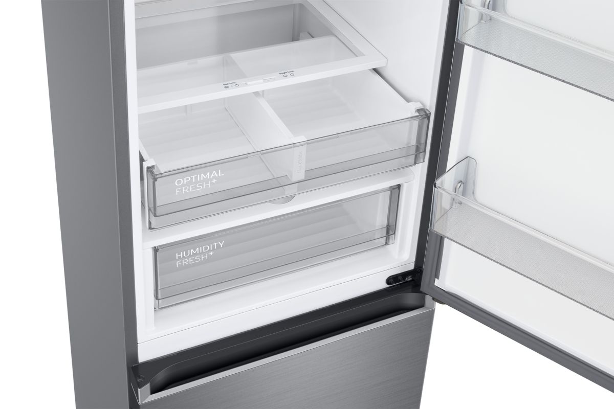 De Samsung koelvries combinatie RB38C776ASR/EF is uitgerust met geavanceerde functies zoals de Twin Cooling Plus-technologie. Dit zorgt ervoor dat de temperatuur en luchtvochtigheid optimaal zijn, waardoor voedingswaren langer vers blijven. De separate koelsystemen voor de koelkast en vriezer voorkomen dat geurtjes zich vermengen, wat bijdraagt aan de smaak en de kwaliteit van je voedsel. Hierdoor geniet je van allerlei versproducten die je langer kunt bewaren.