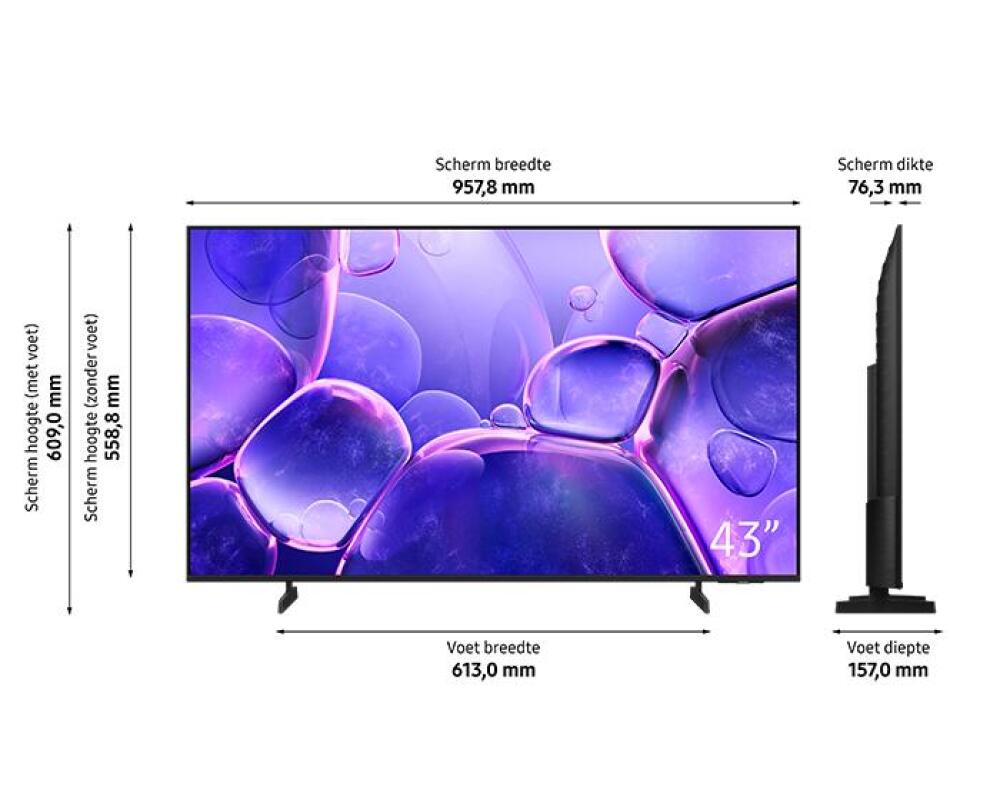 Met een energieklasse G en een gemiddeld jaarlijks energieverbruik van 72 kWh, is de Samsung televisie UE43U8090FUXXN een optie voor wie op zoek is naar betaalbaarheid en functionaliteit. Hoewel het model niet de hoogste verfrissingssnelheid biedt, is het perfect voor gemiddeld gebruik en biedt het uitstekende prestaties voor films en tv-series. Of je nu een fervent kijker bent of gewoon af en toe een serie wilt binge-watchen, deze televisie heeft alles wat je nodig hebt.