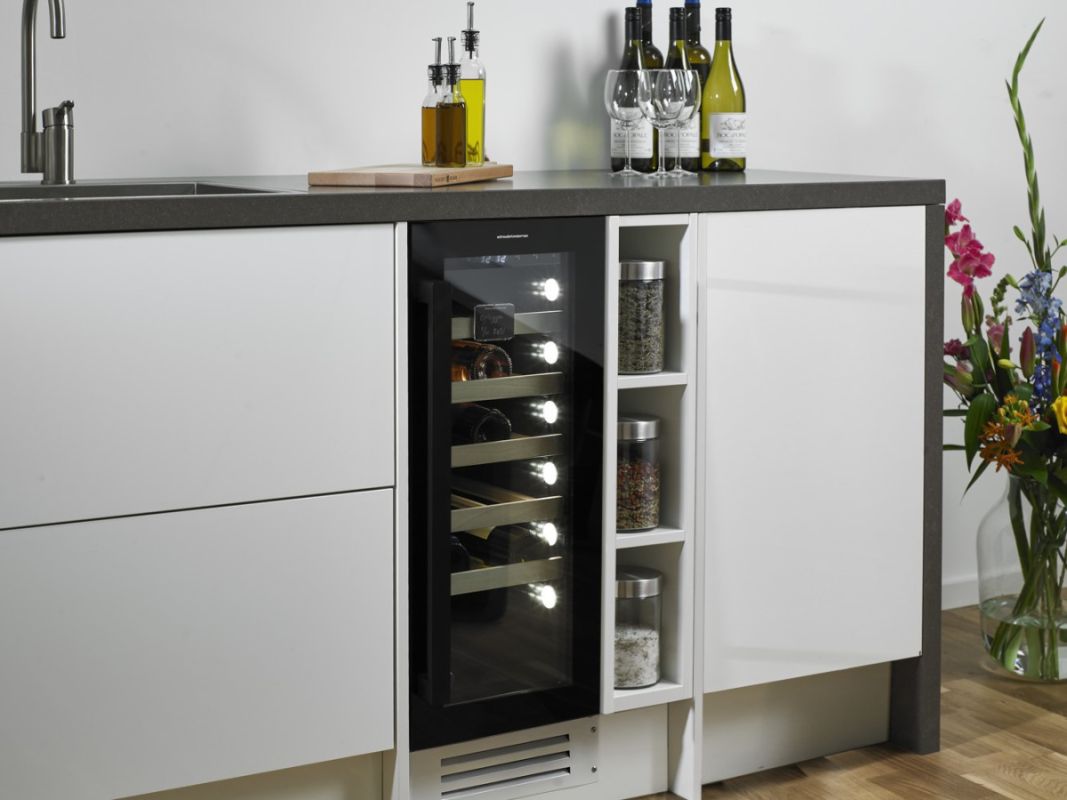 De Biron Uno wijnklimaatkast is een onderbouw model (voor plaatsing onder een keuken werkblad) met een uniek smalle breedte van slechts 29,5cm. Deze wijnklimaatkast heeft een capaciteit van 20 wijnflessen en heeft 1 klimaatzone instelbaar van 5° tot 20°.