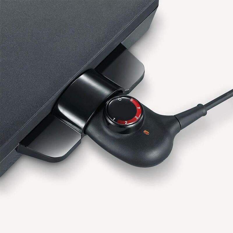 De Severin KG 2397 tafelgrill is uitgerust met een verwijderbare voedingskabel en een instelbare temperatuurregelaar, zodat je de temperatuur precies kunt afstemmen op jouw grillbehoeften. Een praktisch controlelampje laat je weten wanneer de grill klaar is voor gebruik. Met een vermogen van ongeveer 2200 W is deze tafelgrill krachtig genoeg om snel te verwarmen en gelijkmatig te grillen, zodat je in een handomdraai kunt genieten van een heerlijke maaltijd.