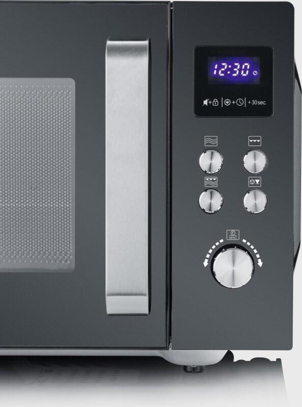 Met een capaciteit van 25 liter is de Severin MW 7763 ruim genoeg om grote gerechten of ovenschalen te plaatsen. De vlakke keramische bodem maakt het mogelijk om met groot servies en verschillende kookmethoden aan de slag te gaan. Dit zorgt ervoor dat je geen aparte draaiplateau meer nodig hebt, wat de ruimte benut en het schoonmaken vereenvoudigt.
