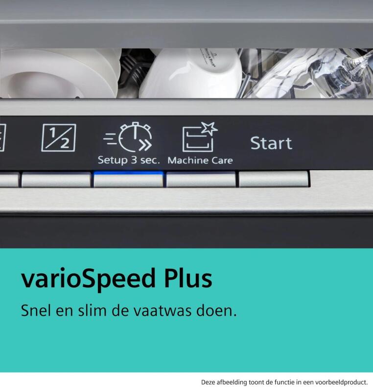 De Siemens SR63EX25ME beschikt over geavanceerde technologieën zoals de varioSpeed Plus-functie, waarmee je vaat tot drie keer sneller schoon wordt. Dit is perfect voor drukke momenten wanneer snelheid essentieel is. Bovendien zorgt de autoOpen Dry-techniek voor uitstekende droogresultaten door automatisch de deur te openen aan het einde van de cyclus. Dit garandeert niet alleen dat jouw vaat helemaal droog is, maar helpt ook om energie te besparen.