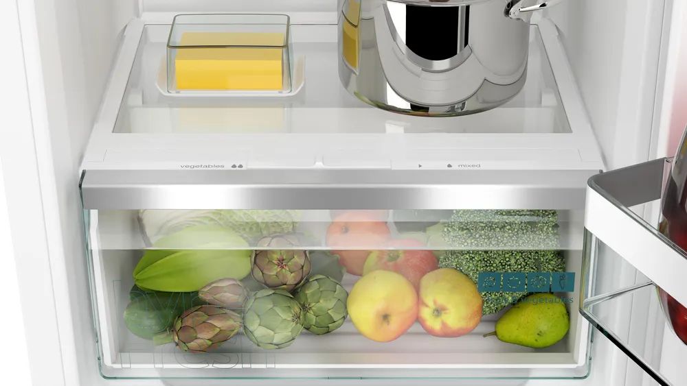 De hyperFresh-lade biedt meer ruimte voor groente en fruit en houdt ze langer vers met de juiste luchtvochtigheid. Zo geniet u extra lang van knapperige komkommers en sappige sinaasappels, en worden de vitaminen en voedingsstoffen optimaal behouden.