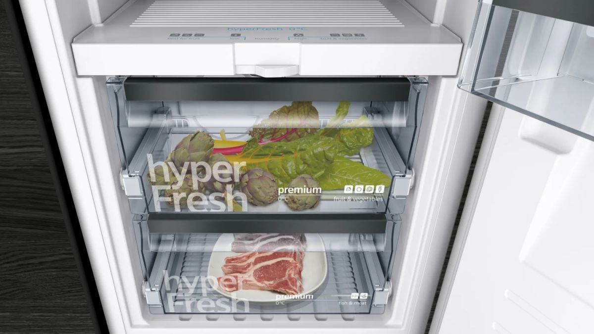 Focus op je gezondheid met ons optimale vershoudsysteem. hyperFresh Premium 0 °C heeft een vershoudlade met temperatuurregeling voor groenten en fruit, maar ook een extra koud vak voor vis en vlees. Zo houd je smaken apart van elkaar en bewaar je je ingrediënten onder ideale omstandigheden.