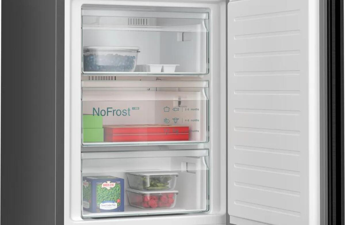 De Siemens koelvriescombinatie KG39NXXBF is de perfecte aanvulling voor jouw keuken, waar stijl en functionaliteit samenkomen. Deze vrijstaande koel-vriescombinatie heeft een elegant ontwerp in geborsteld zwart staal met een anti-fingerprint afwerking, dat niet alleen esthetisch aantrekkelijk is, maar ook praktisch in gebruik. Met een totale hoogte van 203 cm en een breedte van 60 cm biedt deze combinatie voldoende ruimte voor al jouw verse producten en diepvrieswaren.