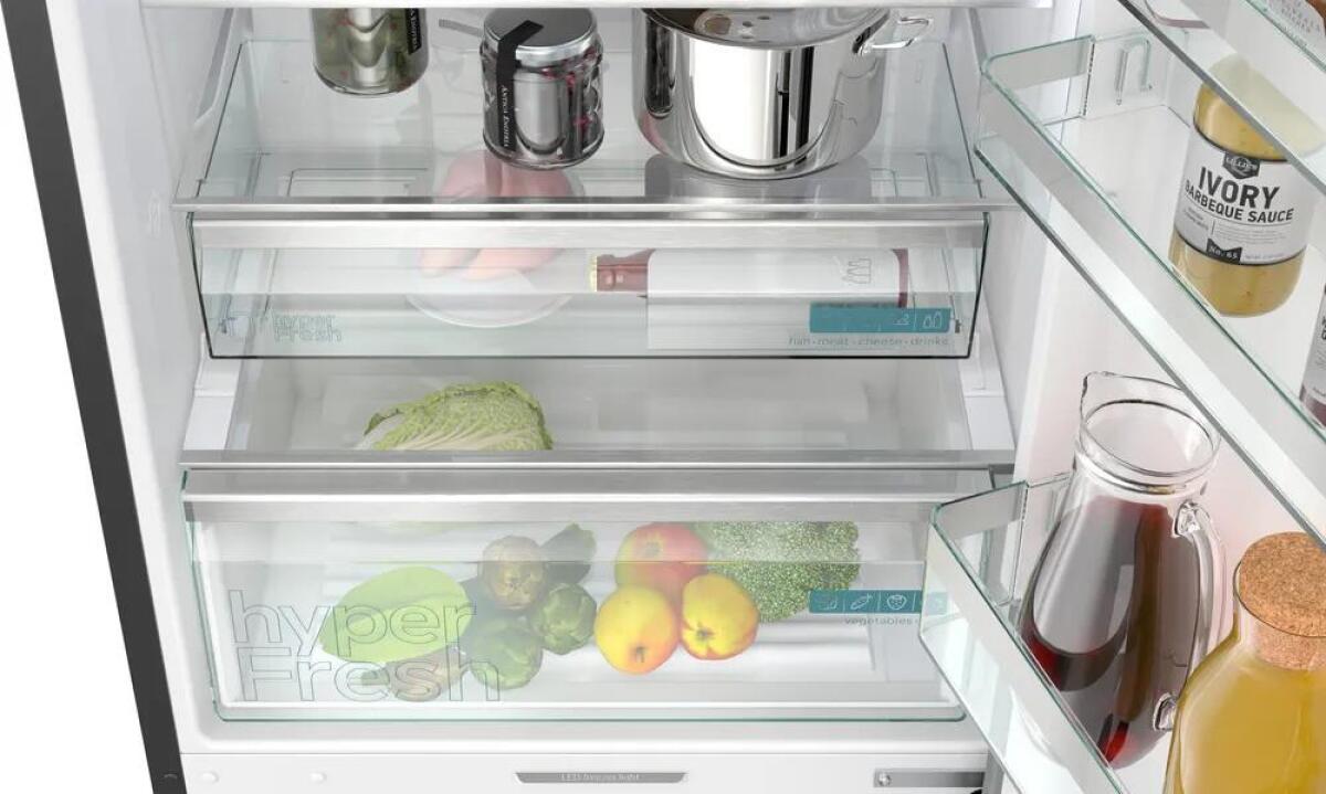 Met een geluidsniveau van slechts 29 dB is de Siemens koelvriescombinatie KG49N4XAF bijzonder stil, waardoor hij ideaal is voor gebruik in open woonruimtes. Het hyperFresh-systeem zorgt ervoor dat je groente en fruit tot wel 2 keer langer vers blijft. Dankzij de multiAirflow technologie wordt de lucht gelijkmatig verdeeld, waardoor alle producten in de koelkast optimaal gekoeld worden.