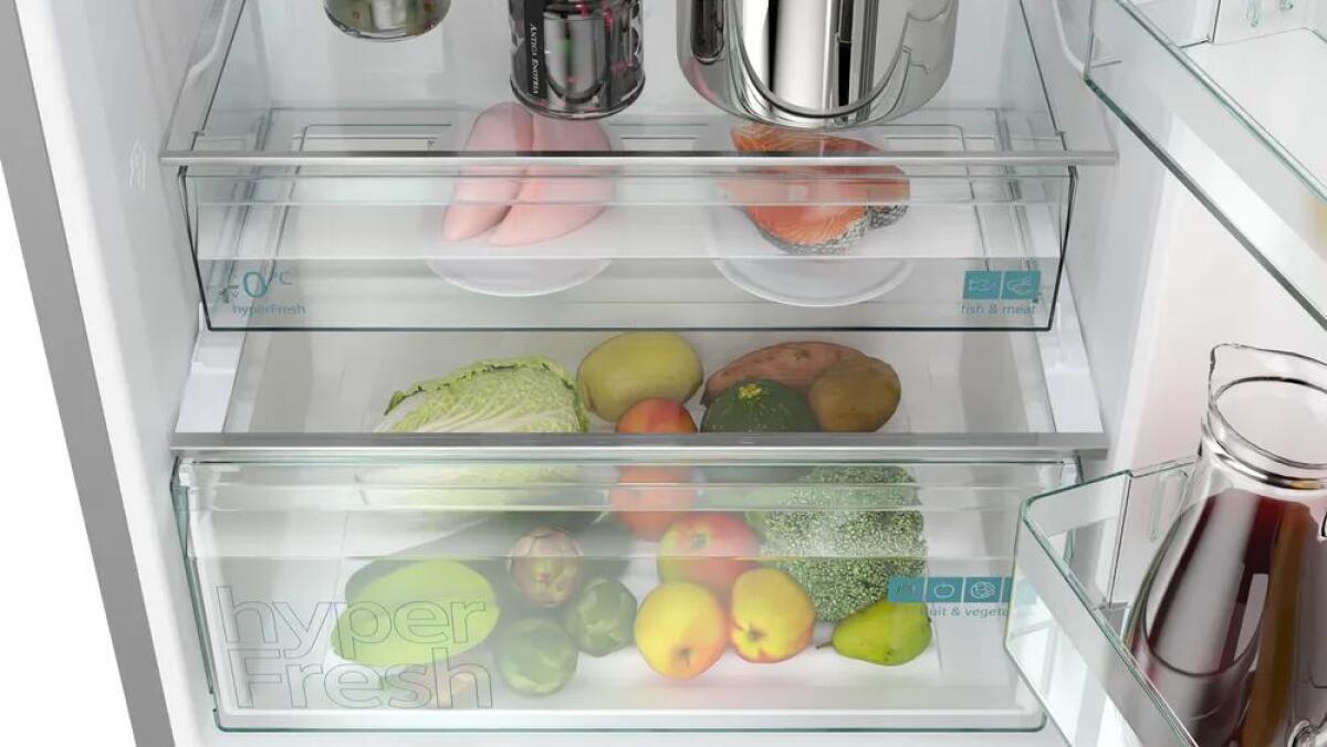Je kiest voor de Siemens koelvriescombinatie KG49NXIBF omdat je een efficiënte en betrouwbare koeloplossing wilt. Deze koelvriescombinatie is niet alleen energiezuinig met een energieklasse B, maar ook ontworpen om je voedsel langer vers te houden. Het hyperFresh systeem zorgt ervoor dat je groente en fruit optimaal bewaard worden in een ideale omgeving.