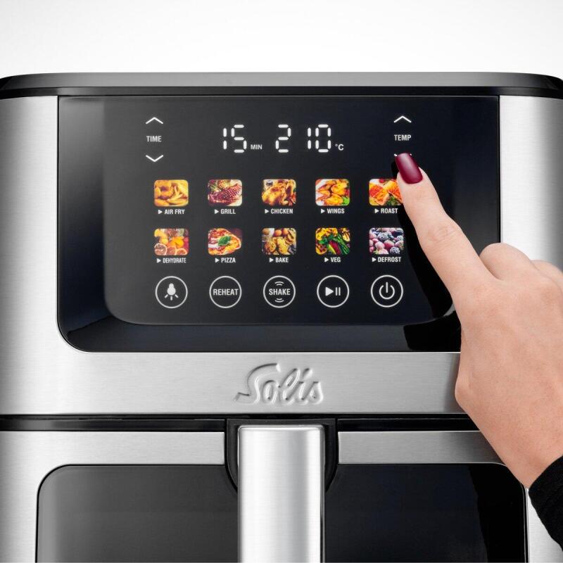 De Solis 8200 Air Fry & Dry XL is ontworpen om het koken eenvoudig en plezierig te maken. Met een capaciteit van 7,5 liter is er voldoende ruimte om maaltijden voor het hele gezin te bereiden. Het aanraakdisplay maakt het instellen van de temperatuur en tijd een fluitje van een cent. Je kunt de temperatuur instellen van 40 °C tot 230 °C, wat je de flexibiliteit biedt om verschillende gerechten te bereiden.